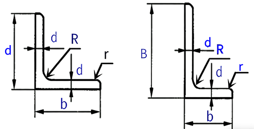 B=長邊寬; b=短邊寬; d=邊厚; R=内弧半徑; r=端弧半徑